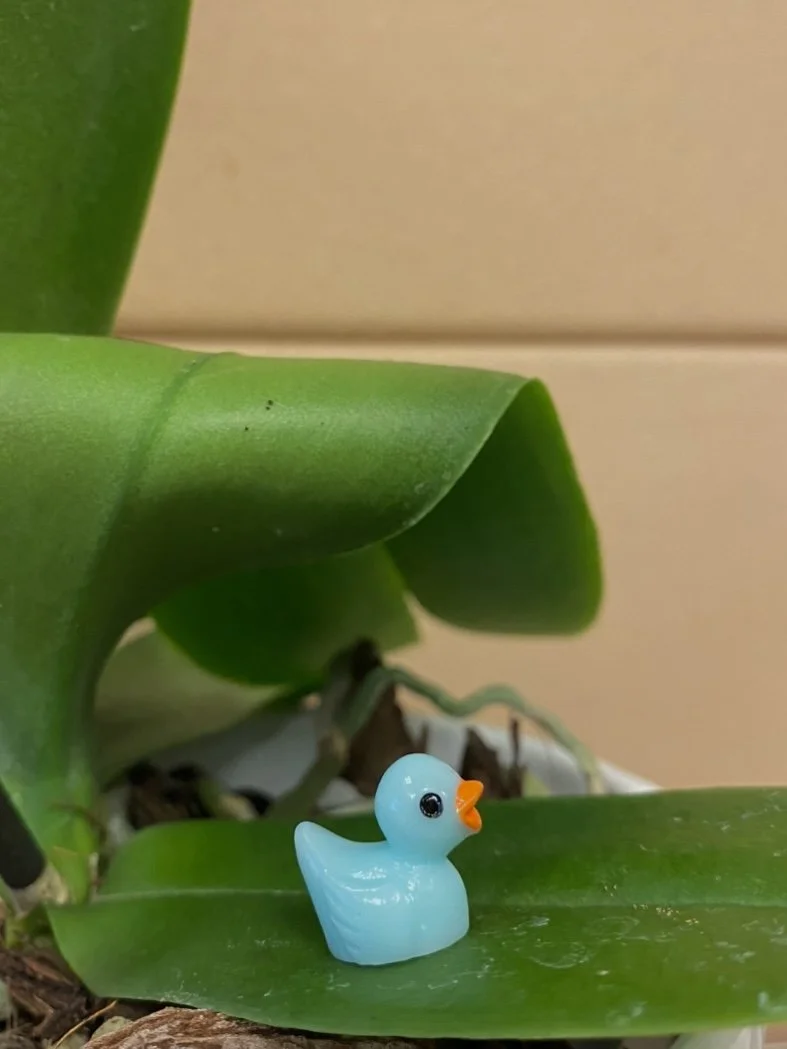 What I will say is that when this tiny duck appeared on the outstretched, green leaf of my orchid, I felt a flurry of joy.